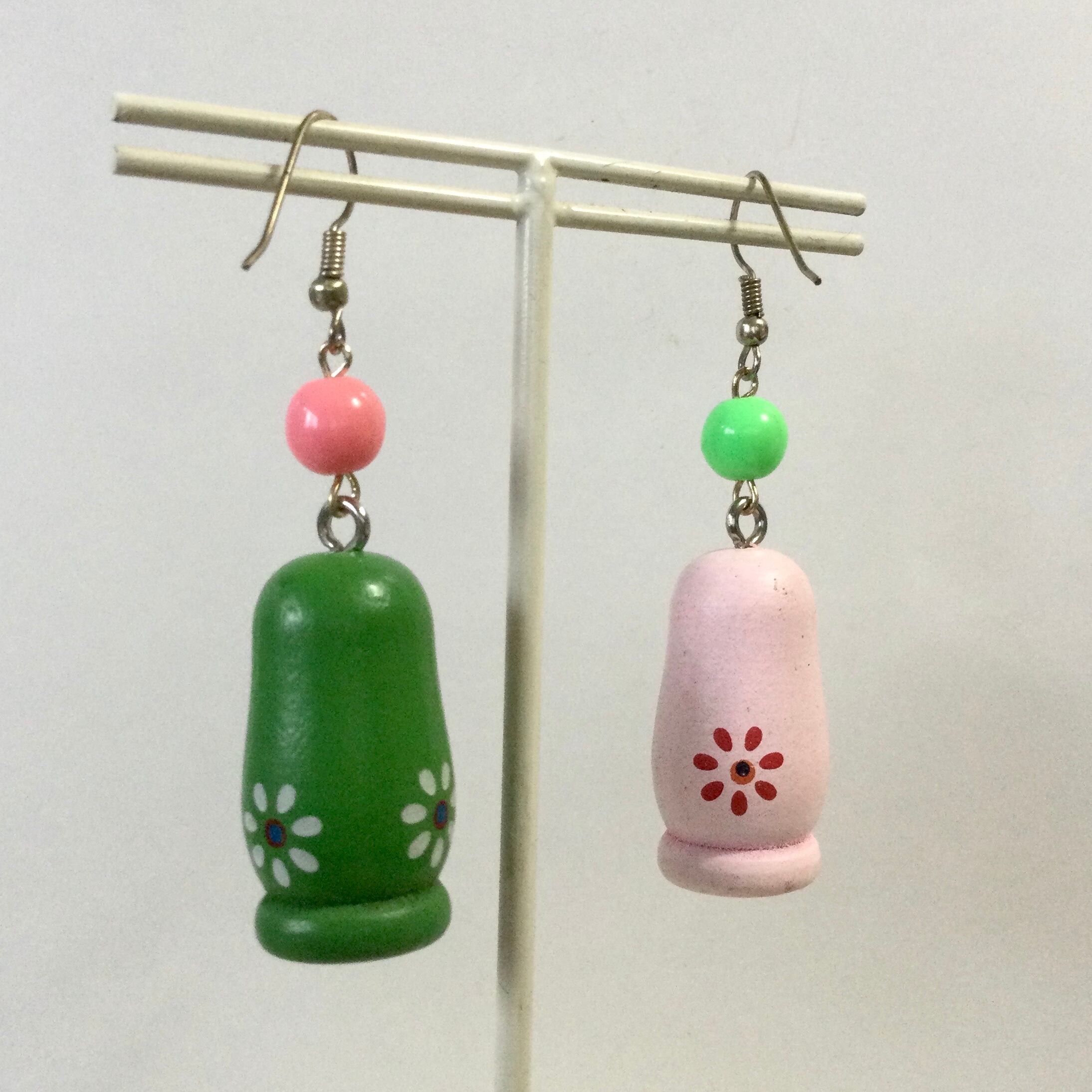 ピンクとグリーンのマトリョーシカに出逢ったのでピアスにしてみました♪