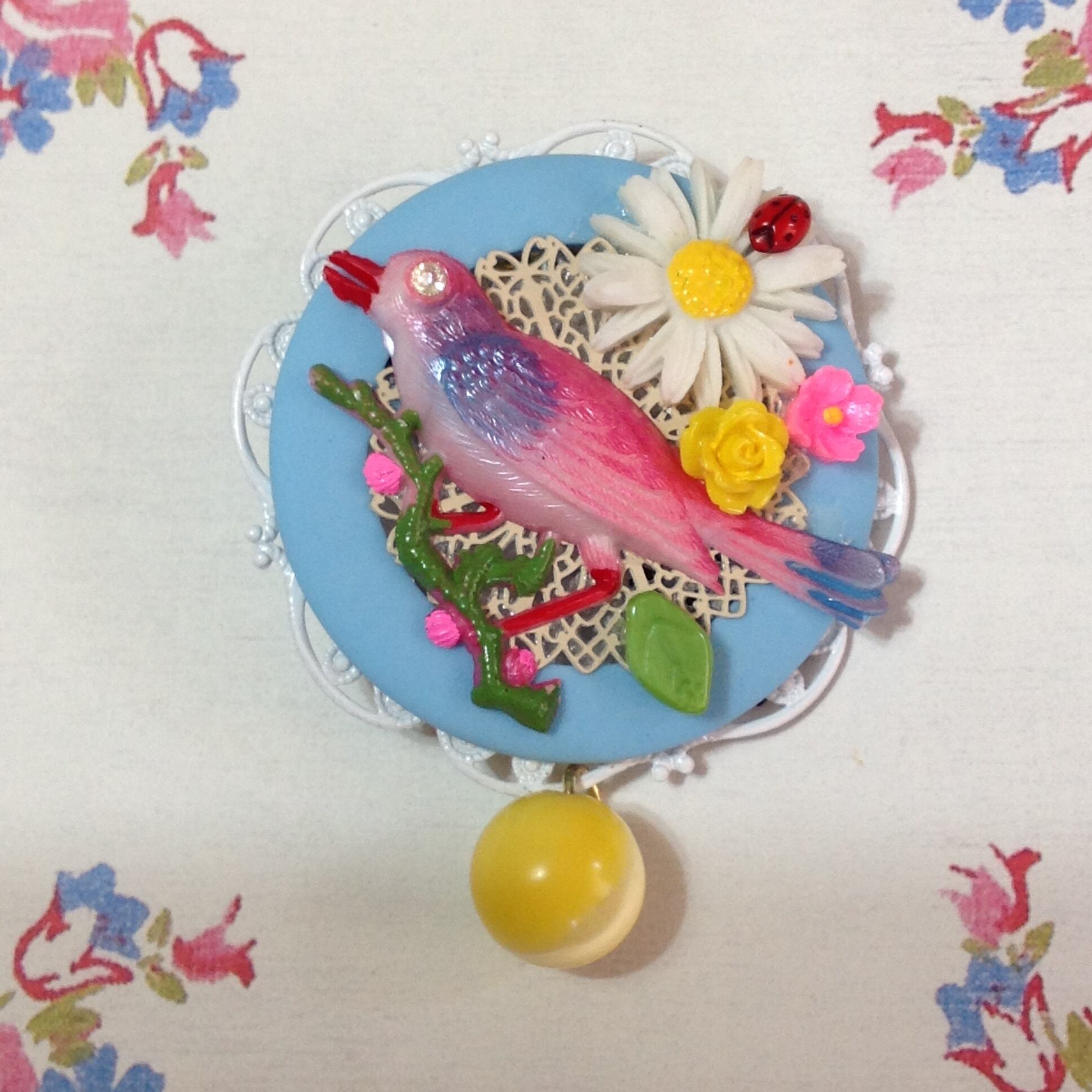 なんといってもvintageセルロイドの鳥の色合いがあいらしい。