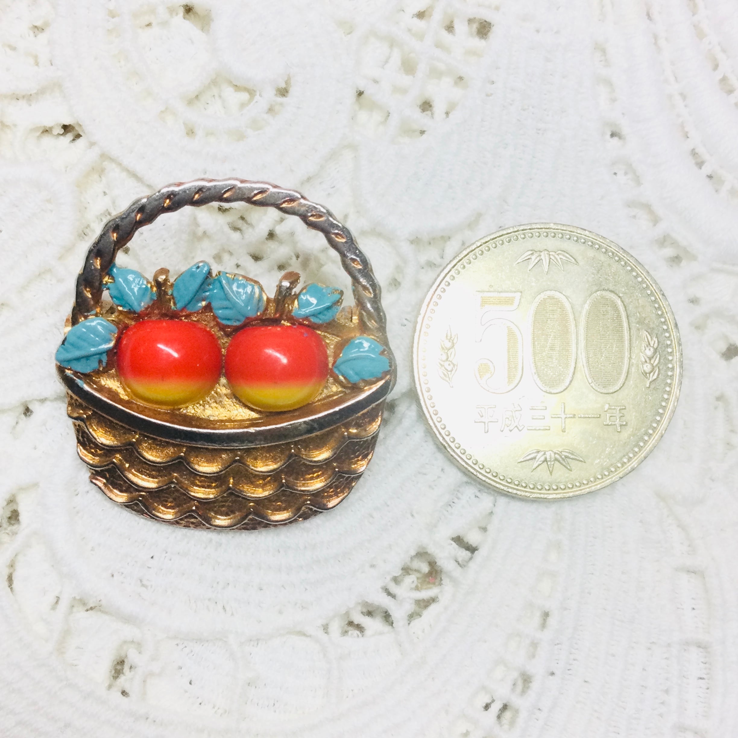 美味しそうなリンゴ2つ入り バスケット ブローチ