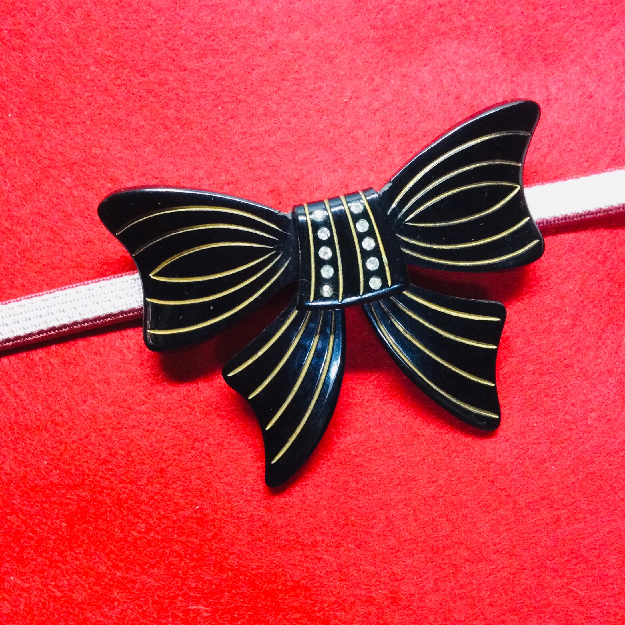 アンティーク ノアールリボン ブローチ(帯飾り)