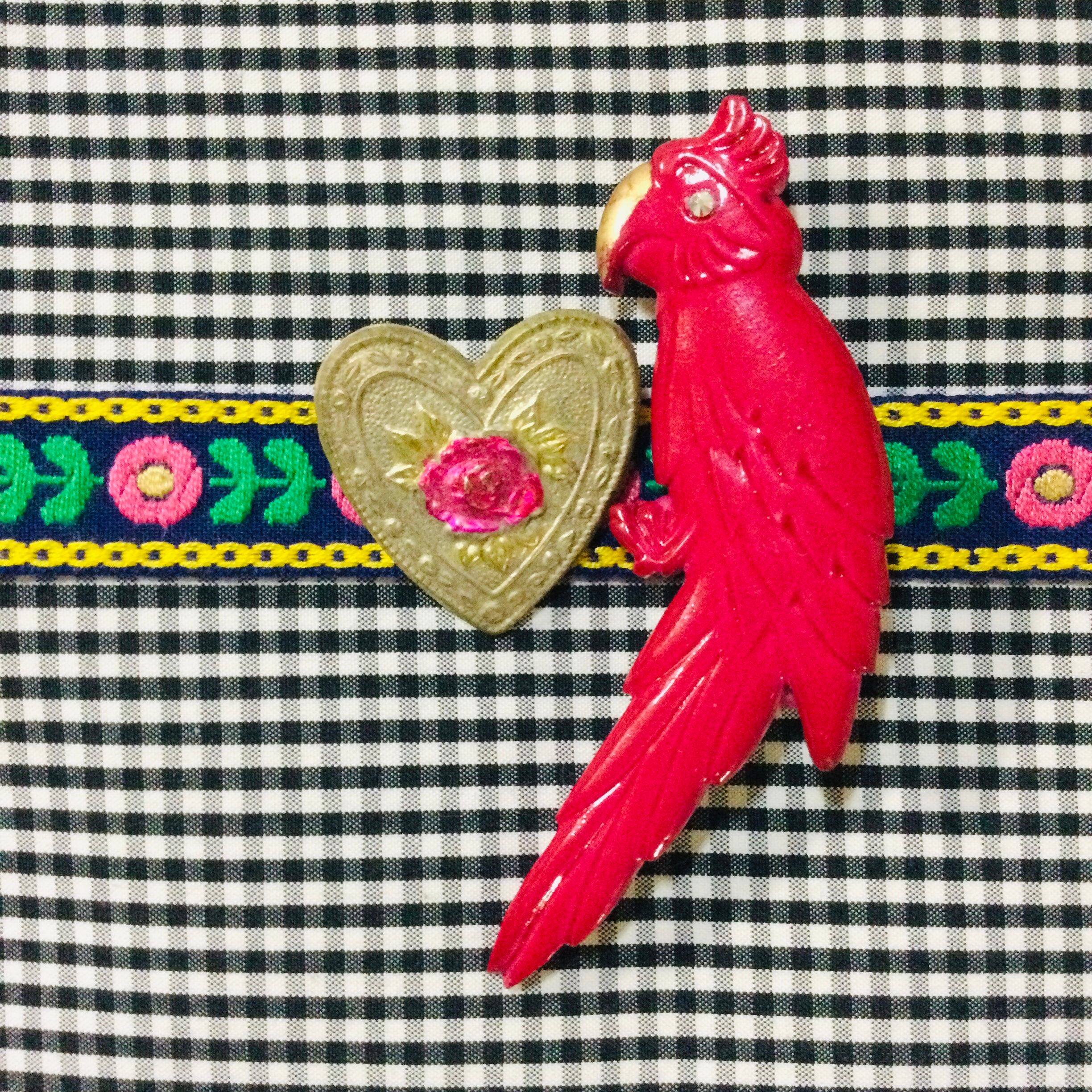 ヴィンテージ 赤いオウムくん ブローチ (帯飾り)