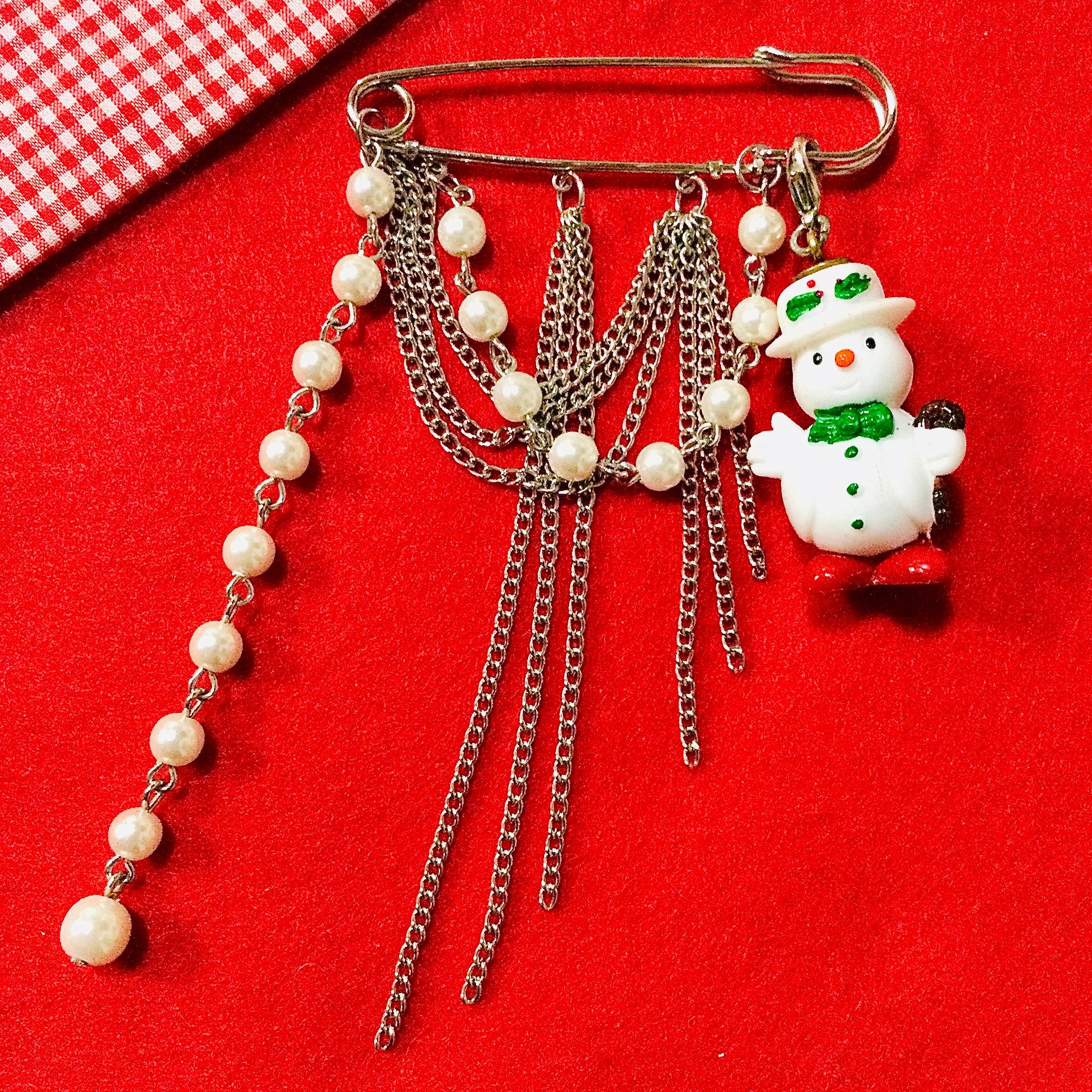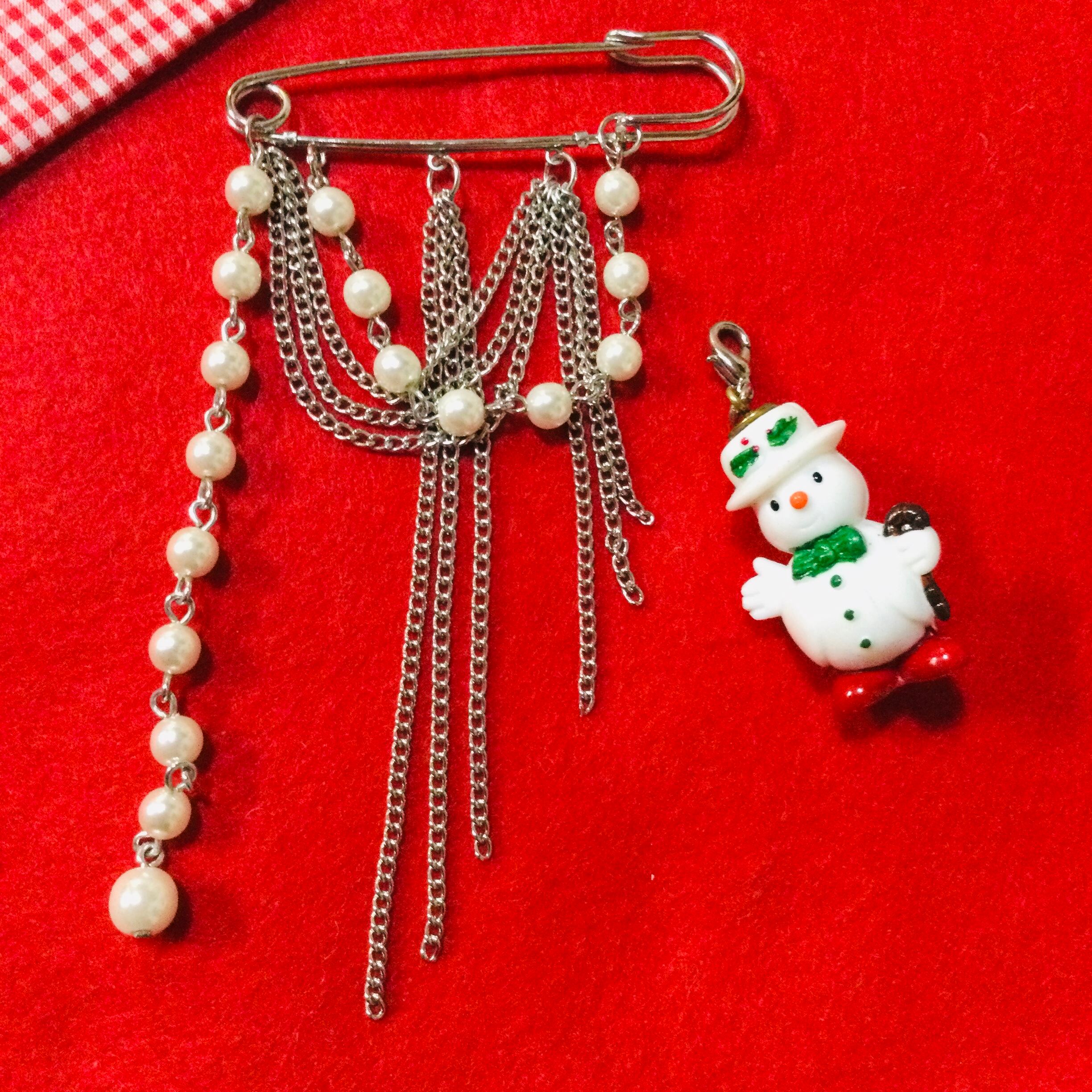 画像の通りスノーマンのチャームは取り外しが出来ますので、一年中活躍してくれるストールピン。