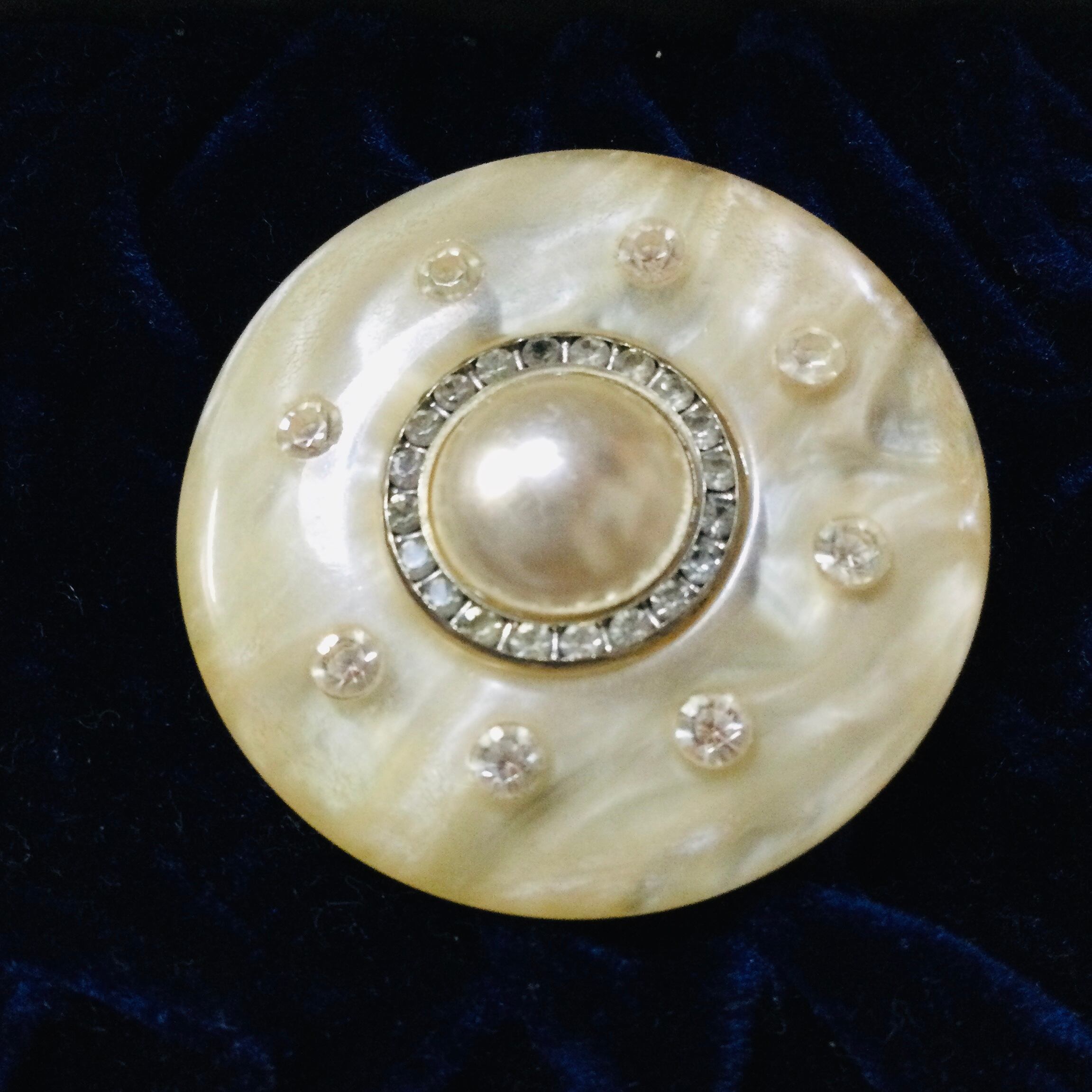 【素材】オールドプラスチック/ラインストーン/プラスチックパール/メタルブローチ金具