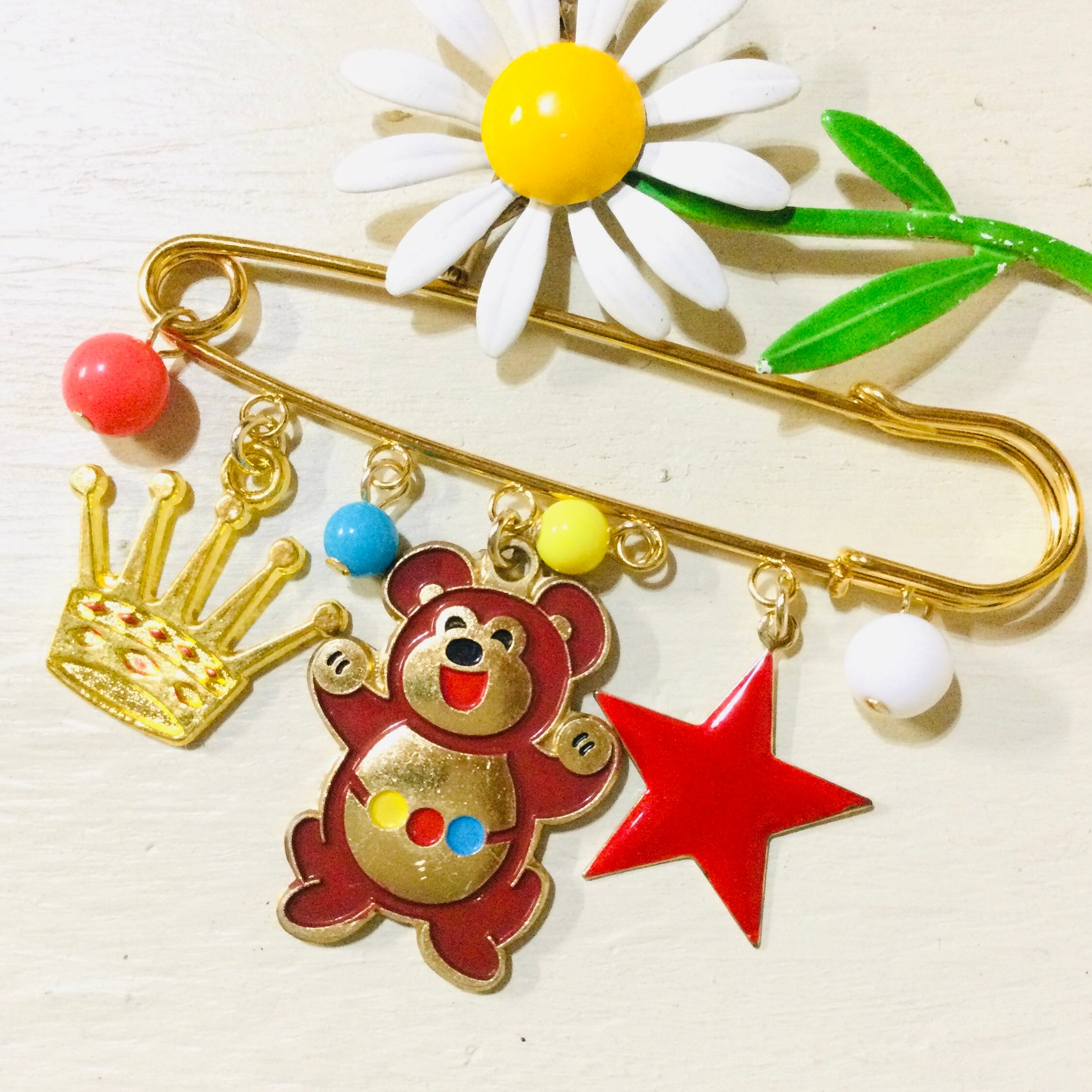 古着に合いそうなレトロハッピーなブローチです。