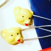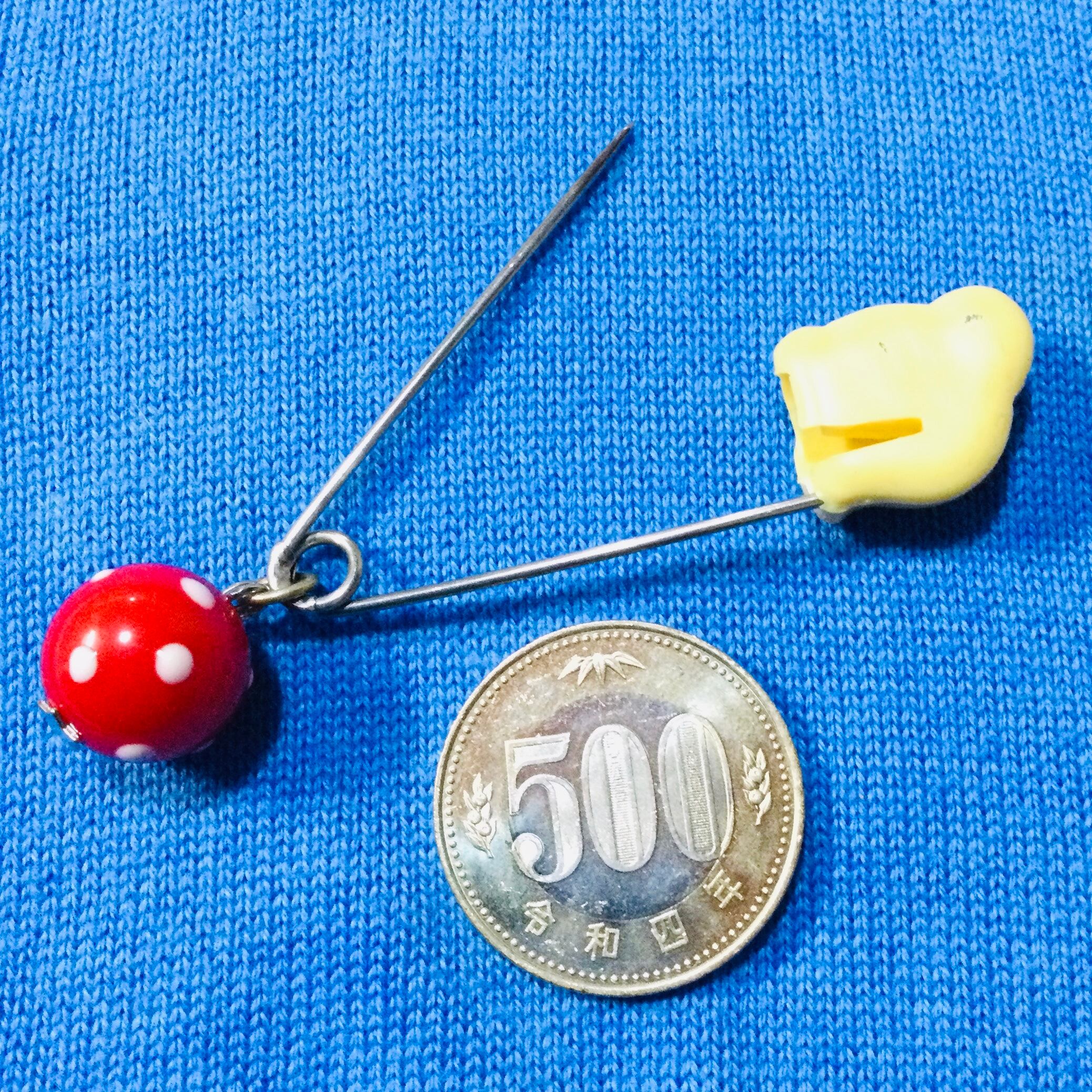 独特のデザインとカラーで、存在感抜群です。目と鼻の部分(???なのか?)には赤に水玉模様のビーズが付いていて、センスの良いアクセントに♪