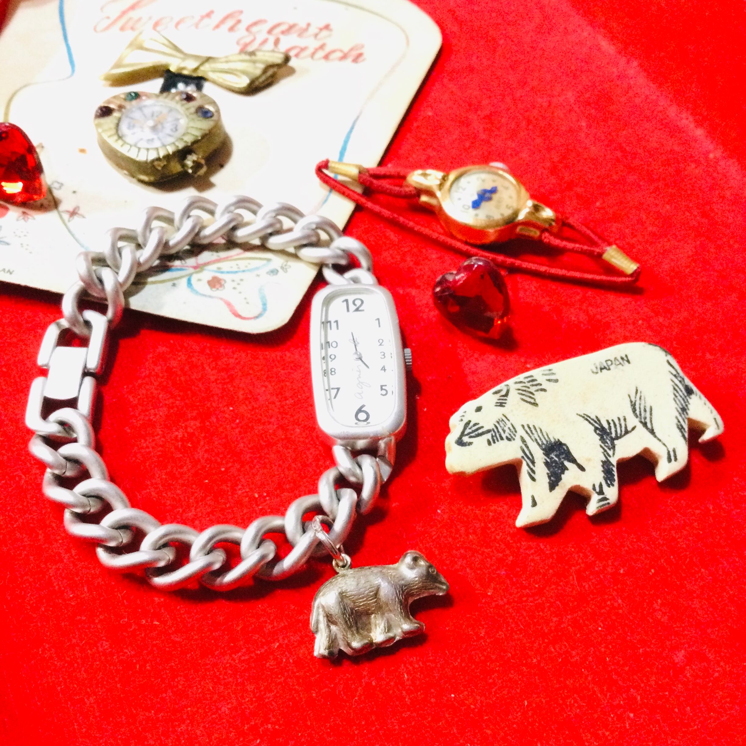 子熊のチャーム付きブレスレット(腕時計)とブローチ