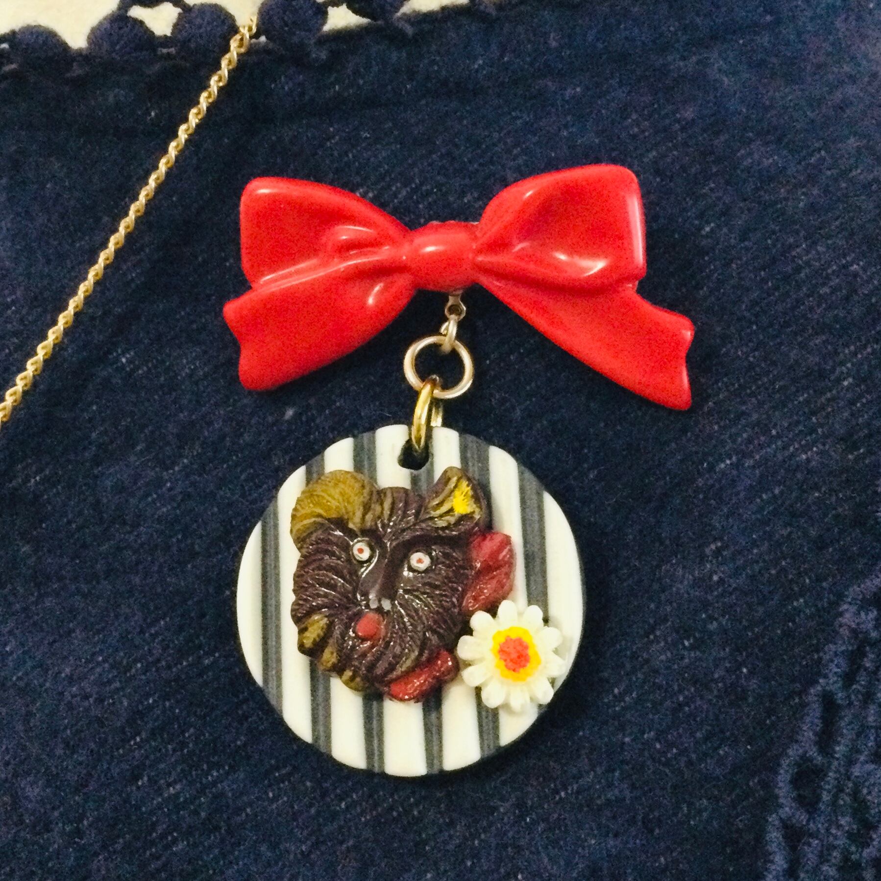 赤いリボンとともに、キュートなテリアがプチッとアクセントになるプチブローチ♪