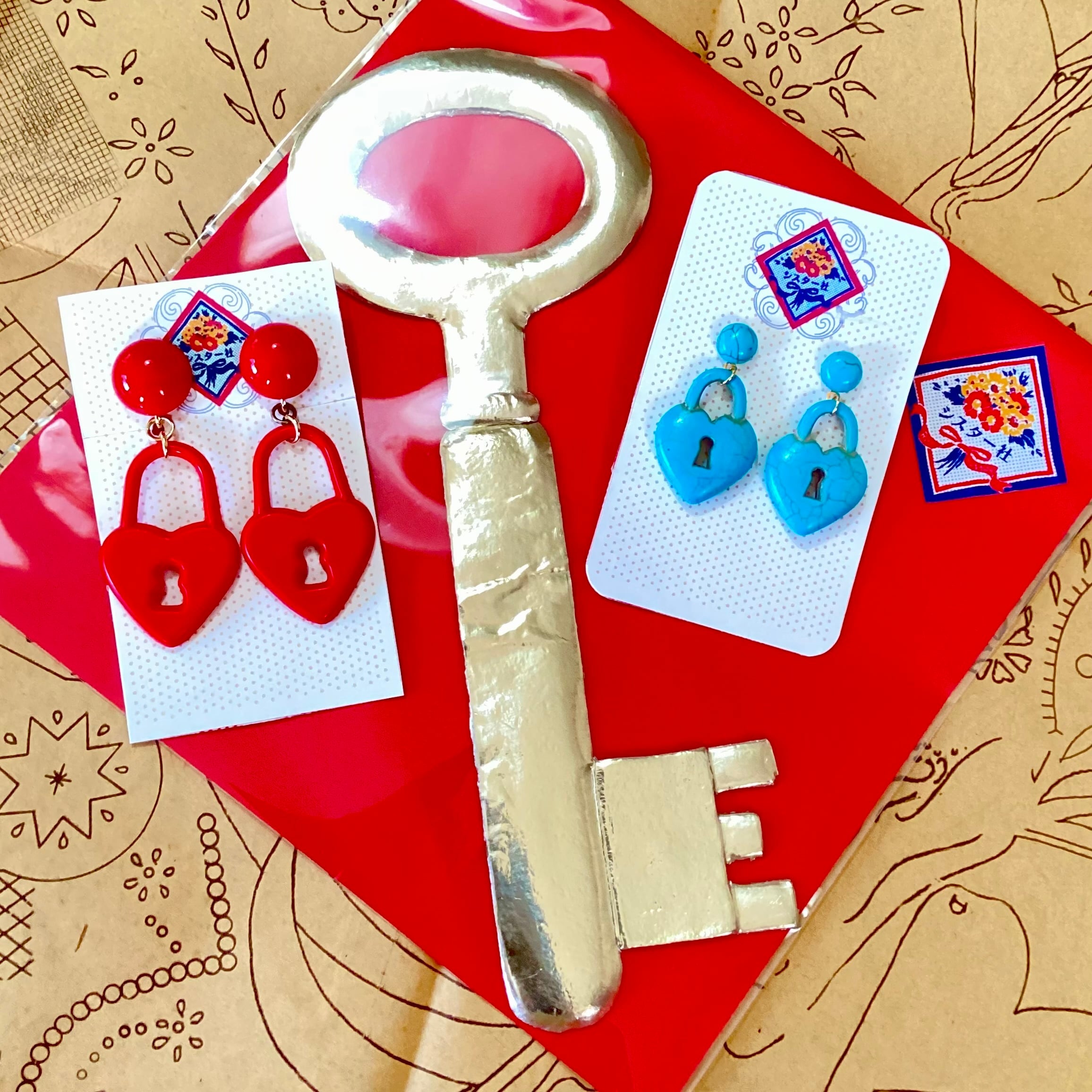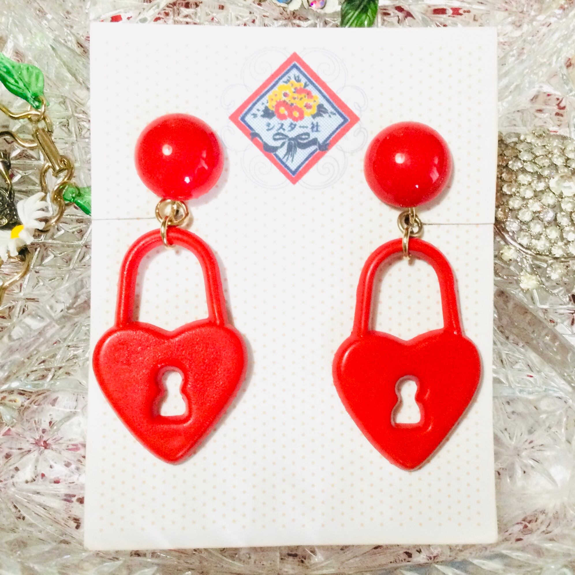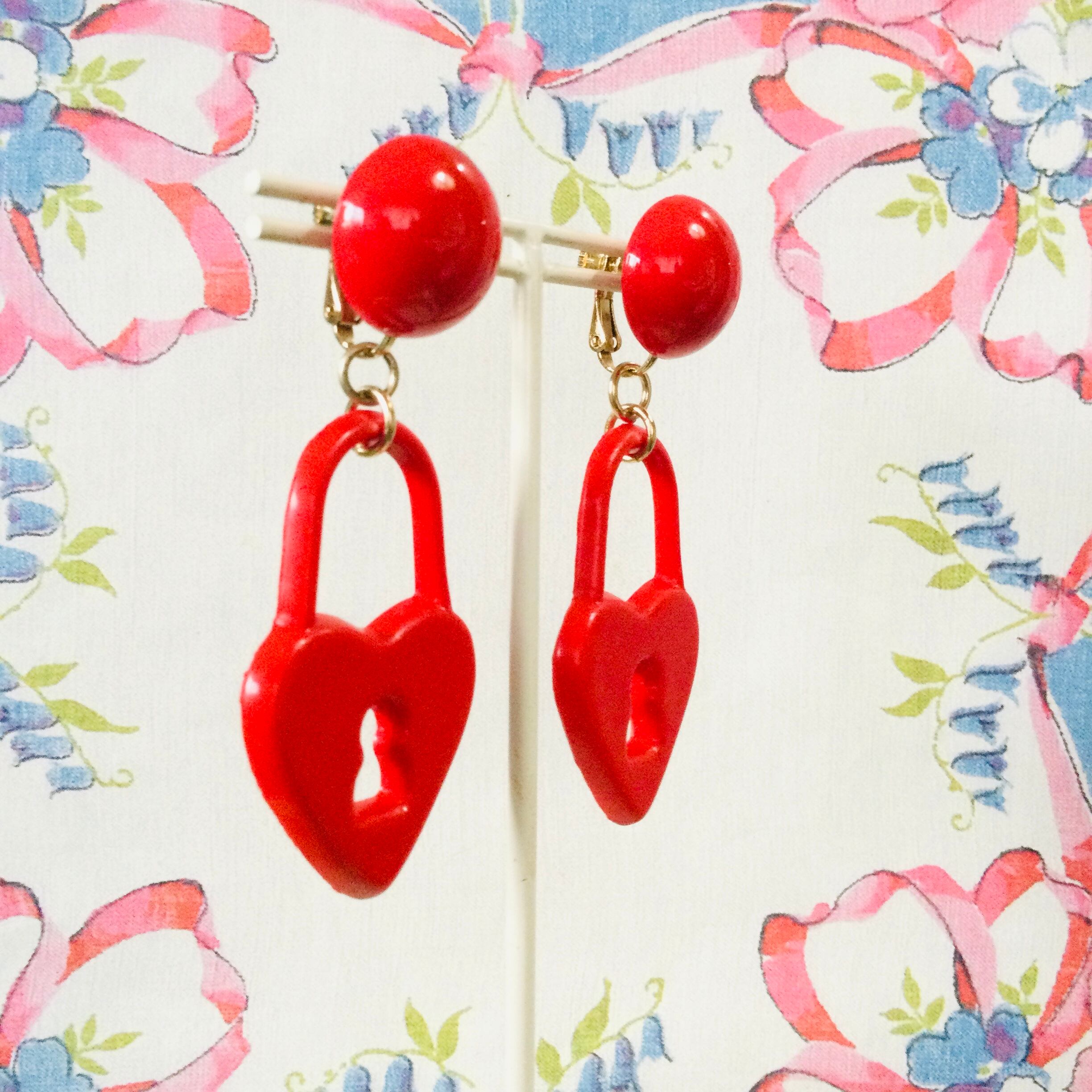 ハート形に鍵穴が開いた、真っ赤なイヤリング。