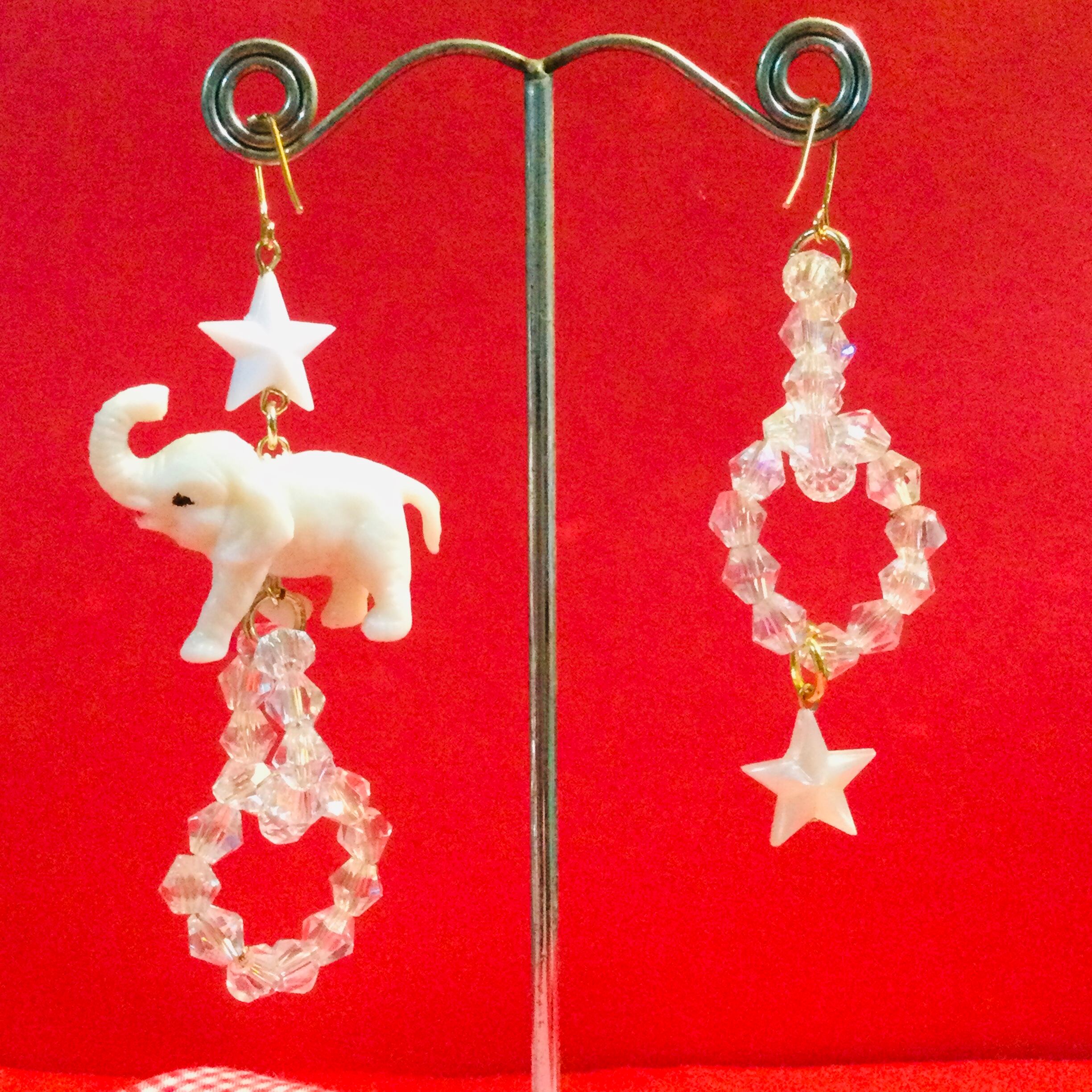 お星さまと白い象ピアスは、気品溢れるデザインで人気のアクセサリー。聖なる象をモチーフにしたこのピアスは、コダワリのある女性たちから愛される一品です。