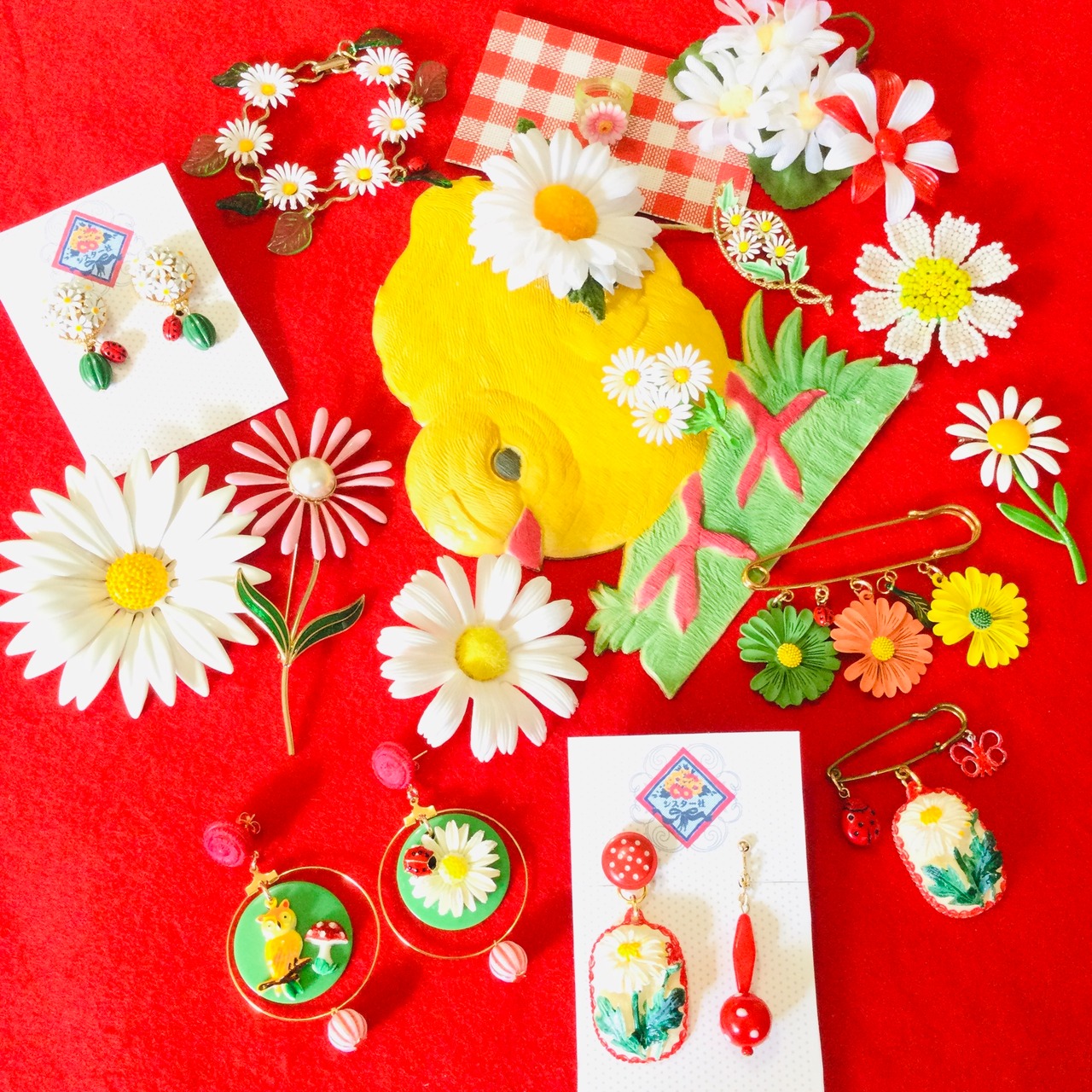 アメリカヴィンテージのマーガレットブーケブローチは、レトロで可愛らしいデザインが魅力です。1つ1つ手作りされた花たちは、色鮮やかで細部にまでこだわりが感じられます。