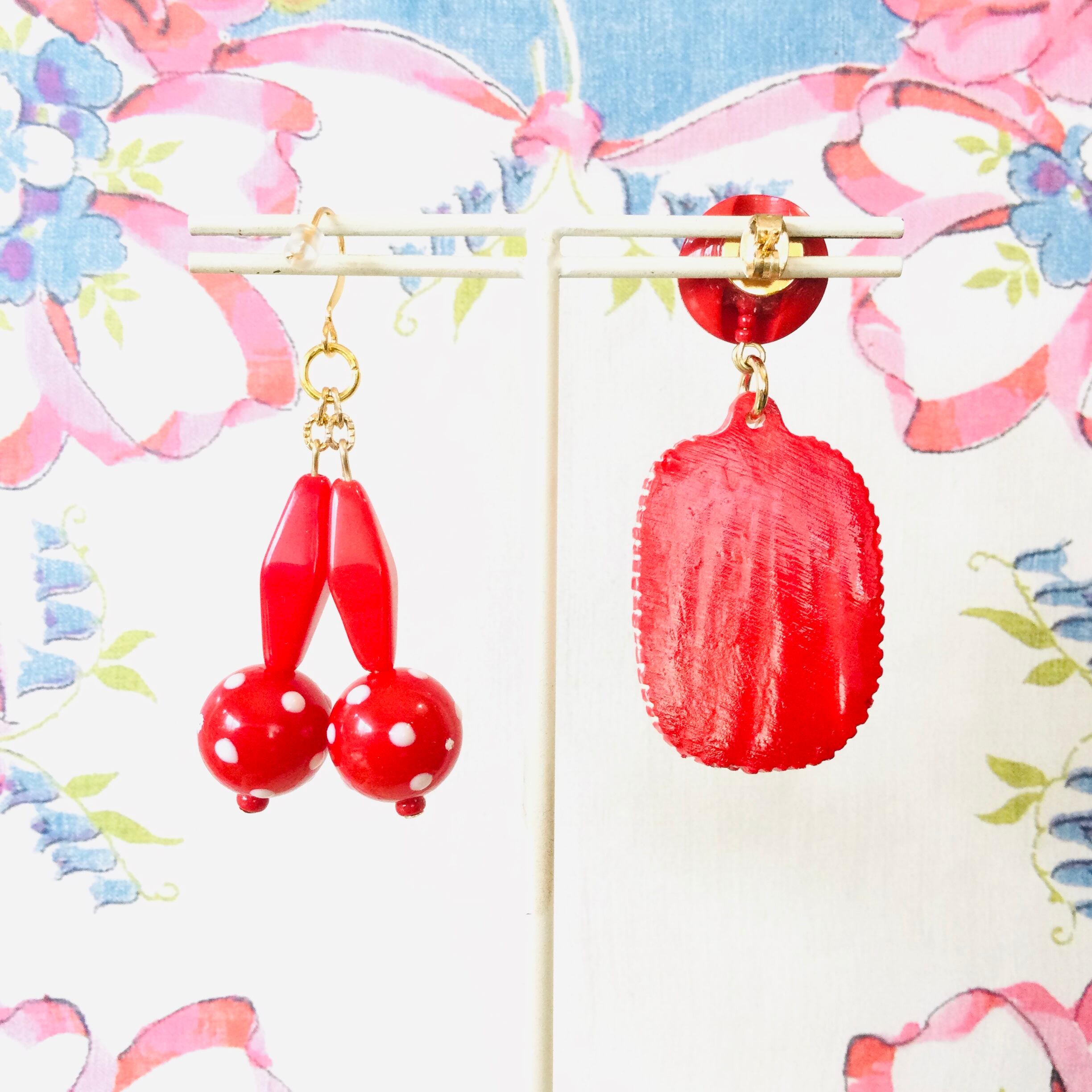 このピアスを身に着ければ、まるで花冠をかぶったような気持ちになれるかもしれません。あなたの日々のスタイリングを素敵に彩ってくれる、ヒナギクと赤の水玉ビーズのピアス。ぜひ手に取ってみてください。