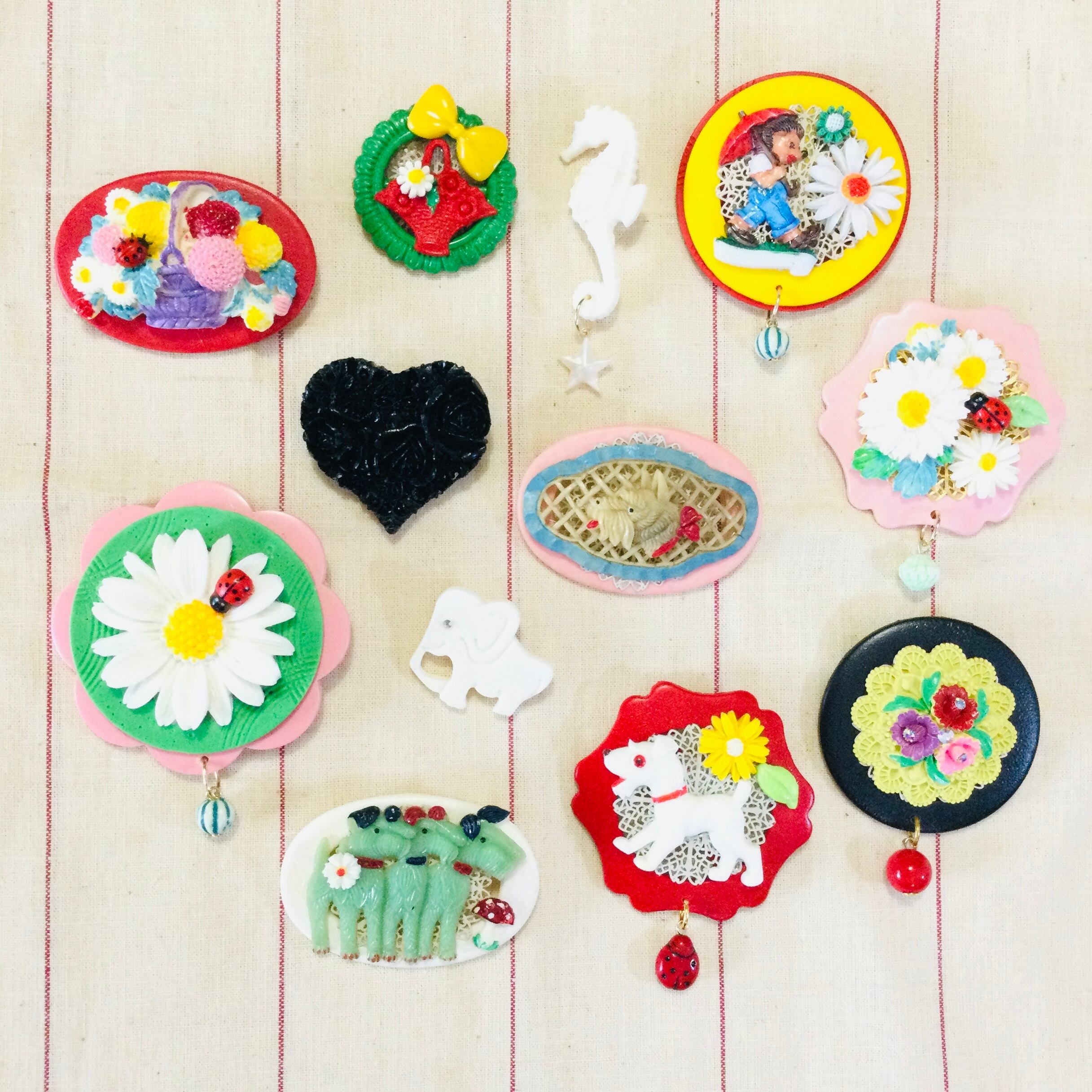 【素材】自家製プラスチックパーツ/メタルレース板/チェコガラスビーズ/メタルブローチ金具