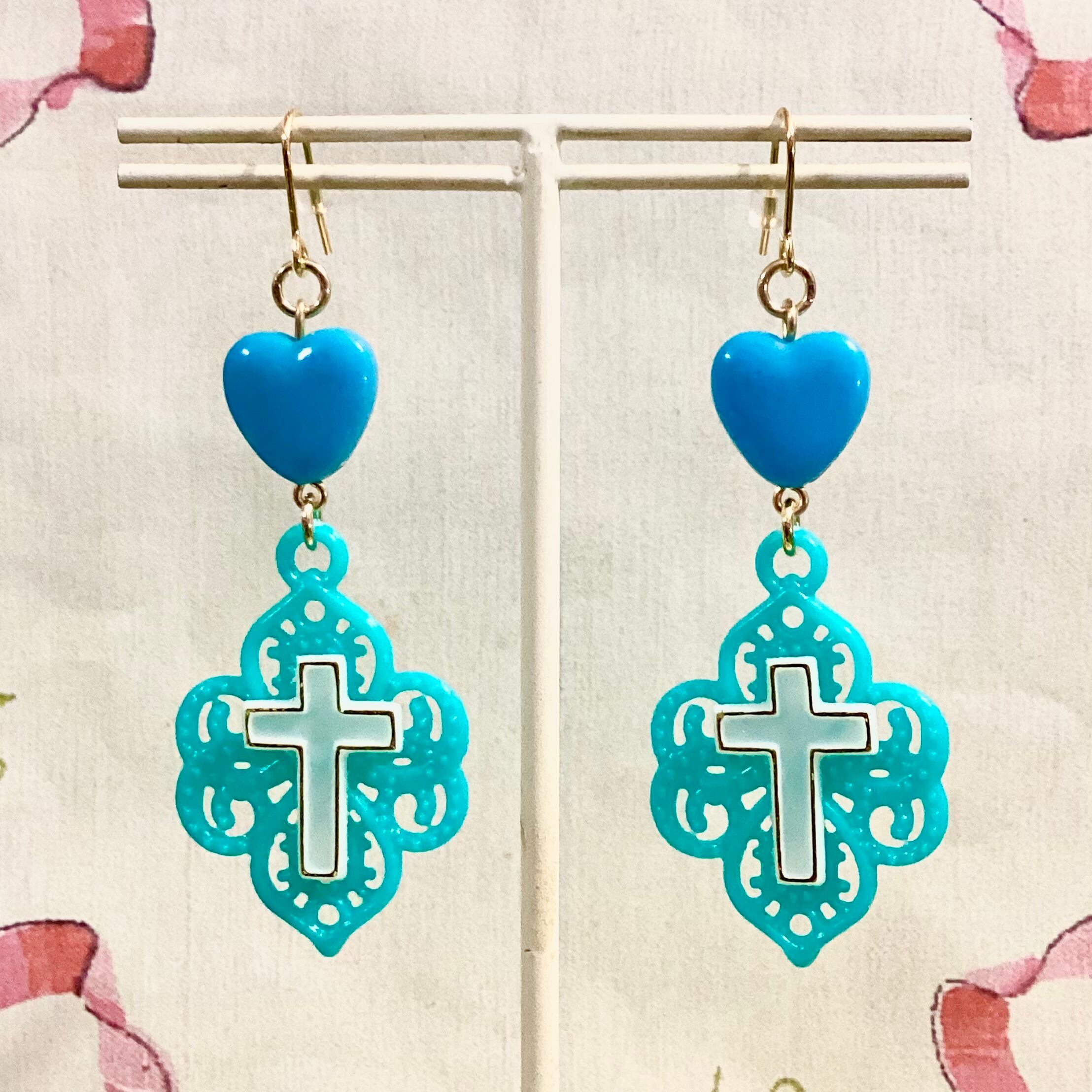 甘くて可愛いハートとクロスがあしらわれたお守りピアス。