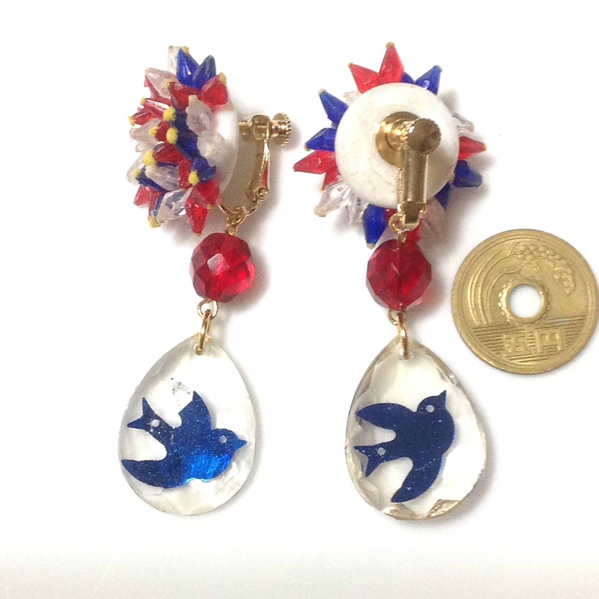 523 トリコロール鳥 イヤリング