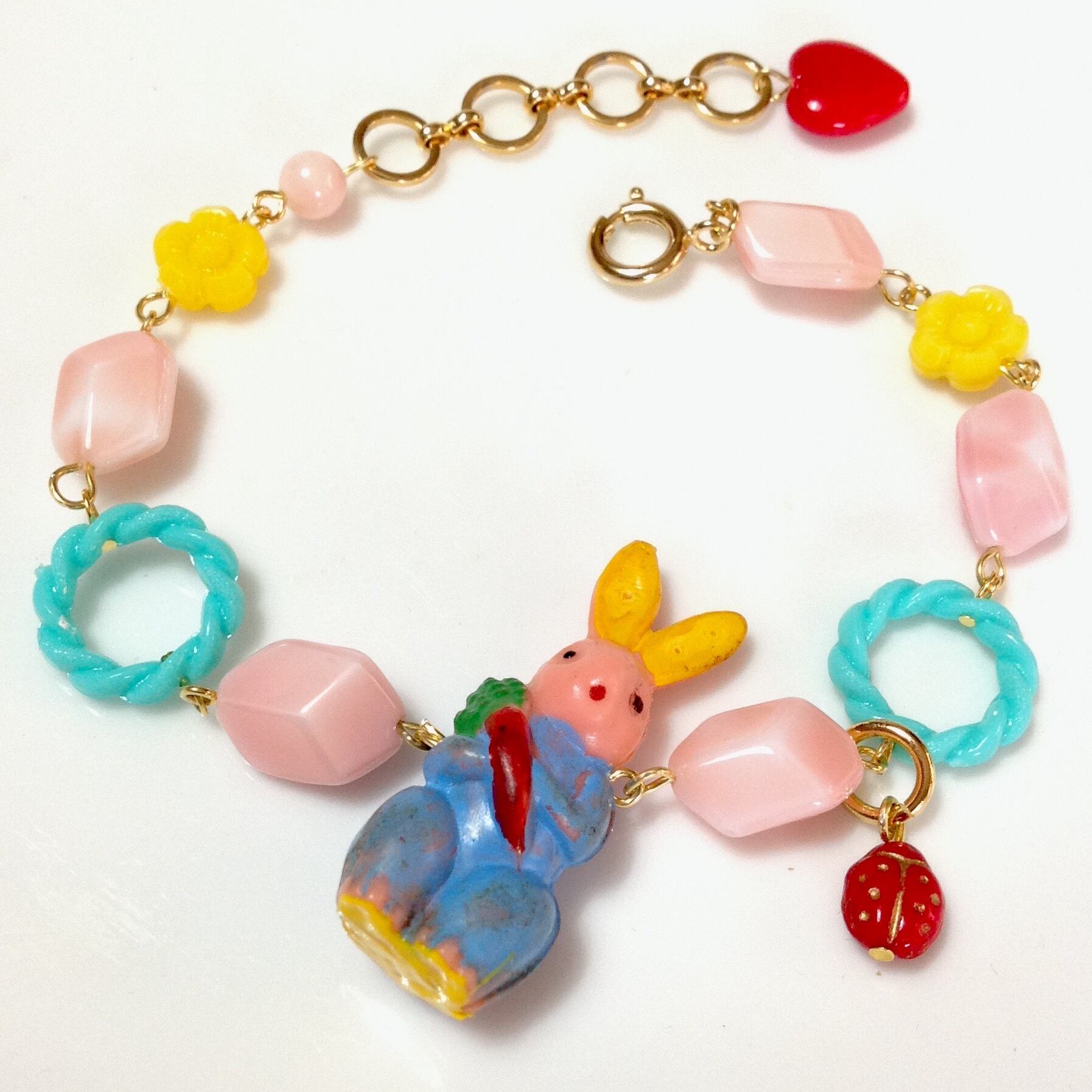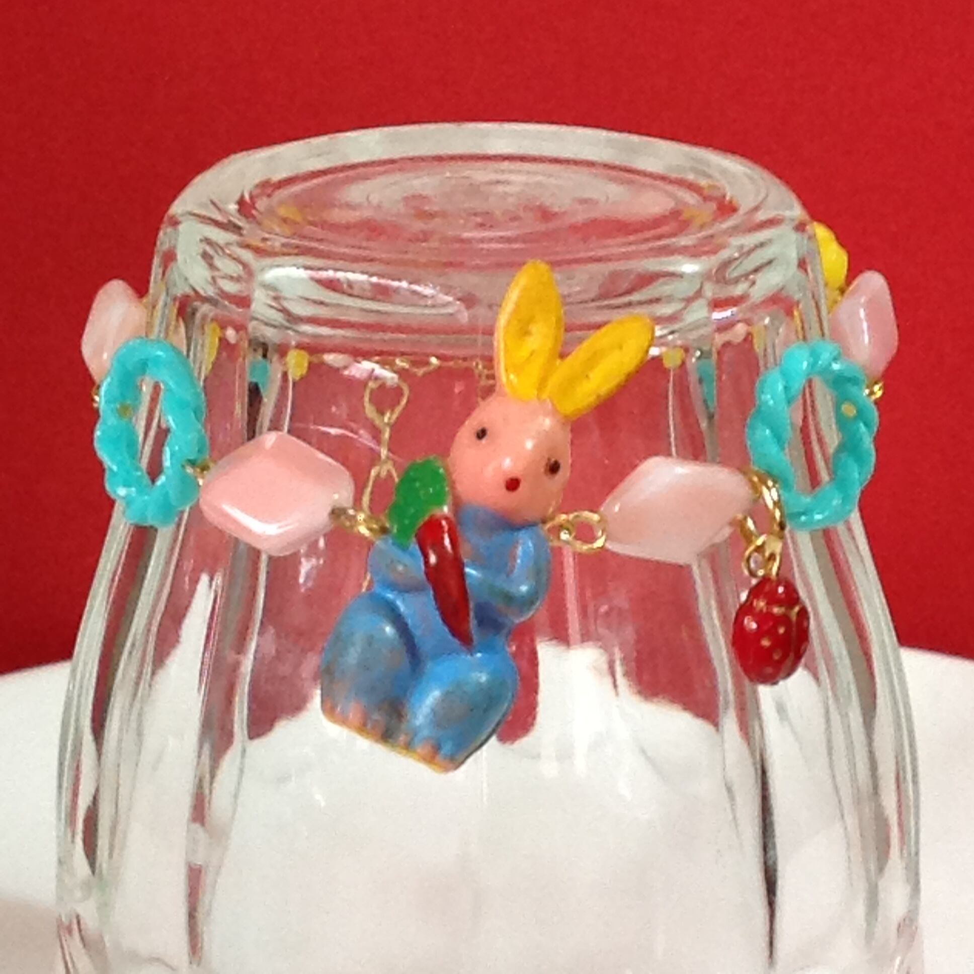 【素材】vintageプラスチック(ウサギ)/ガラスビーズ/プラスチックビーズ/メタル留め具、アジャスター