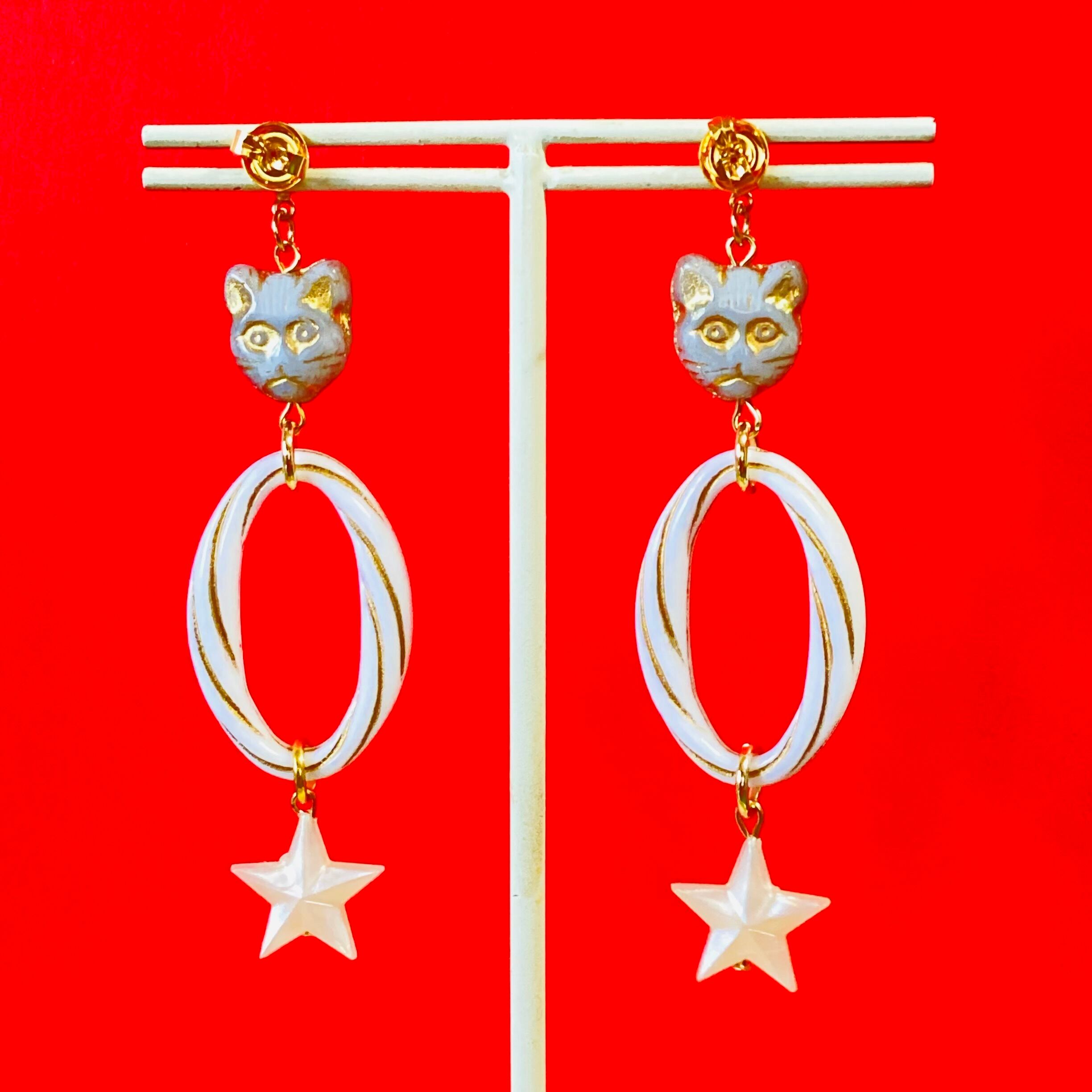 すこしふしぎな憂いのあるふたごのネコさんのピアスです。