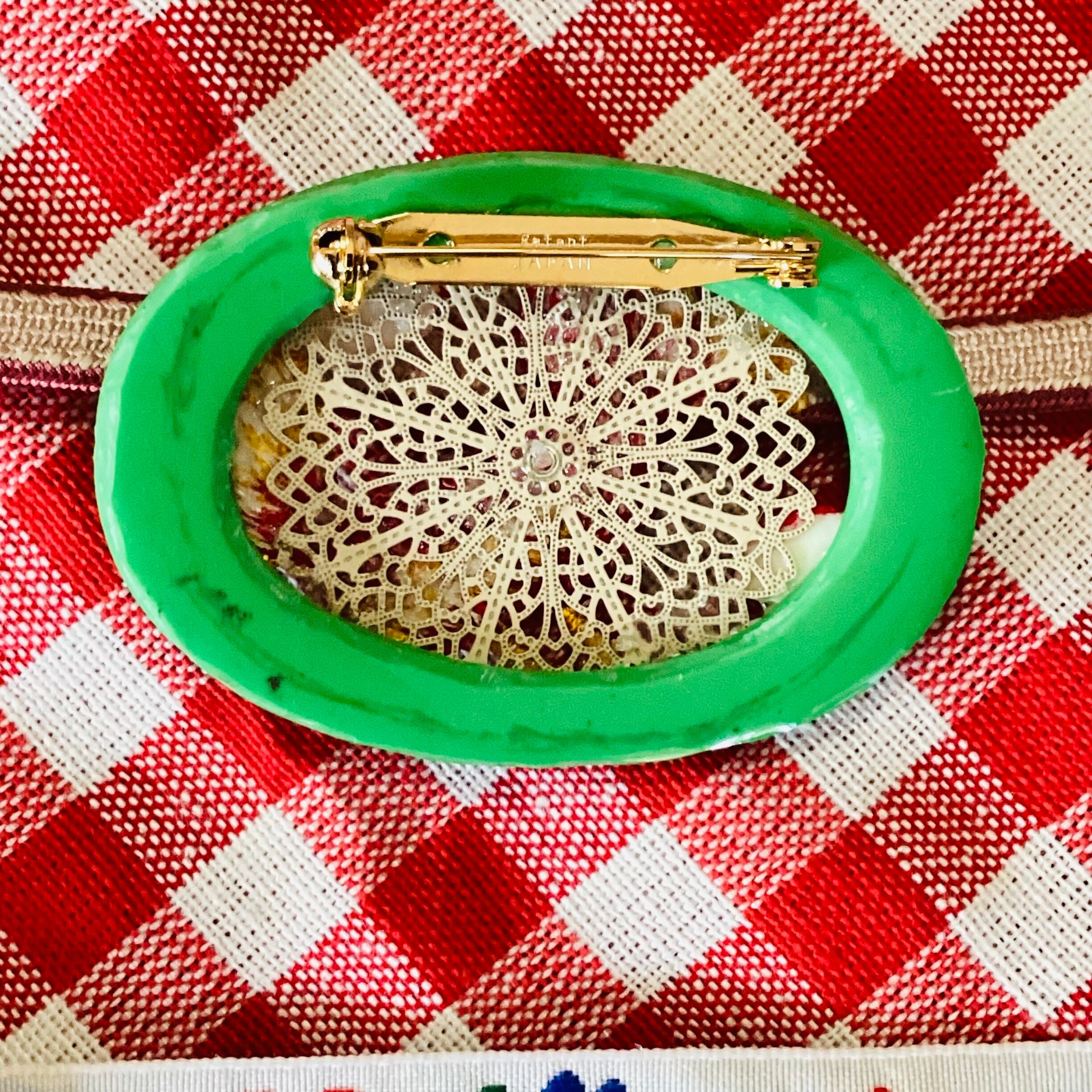 鳥とマッシュルームとマーガレットの帯飾りは、華やかで個性的なアクセサリーです。