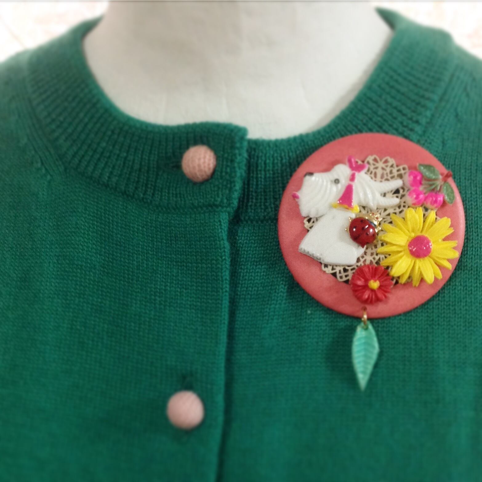 サクサンボも、てんとう虫も、葉っぱもvintageです。
