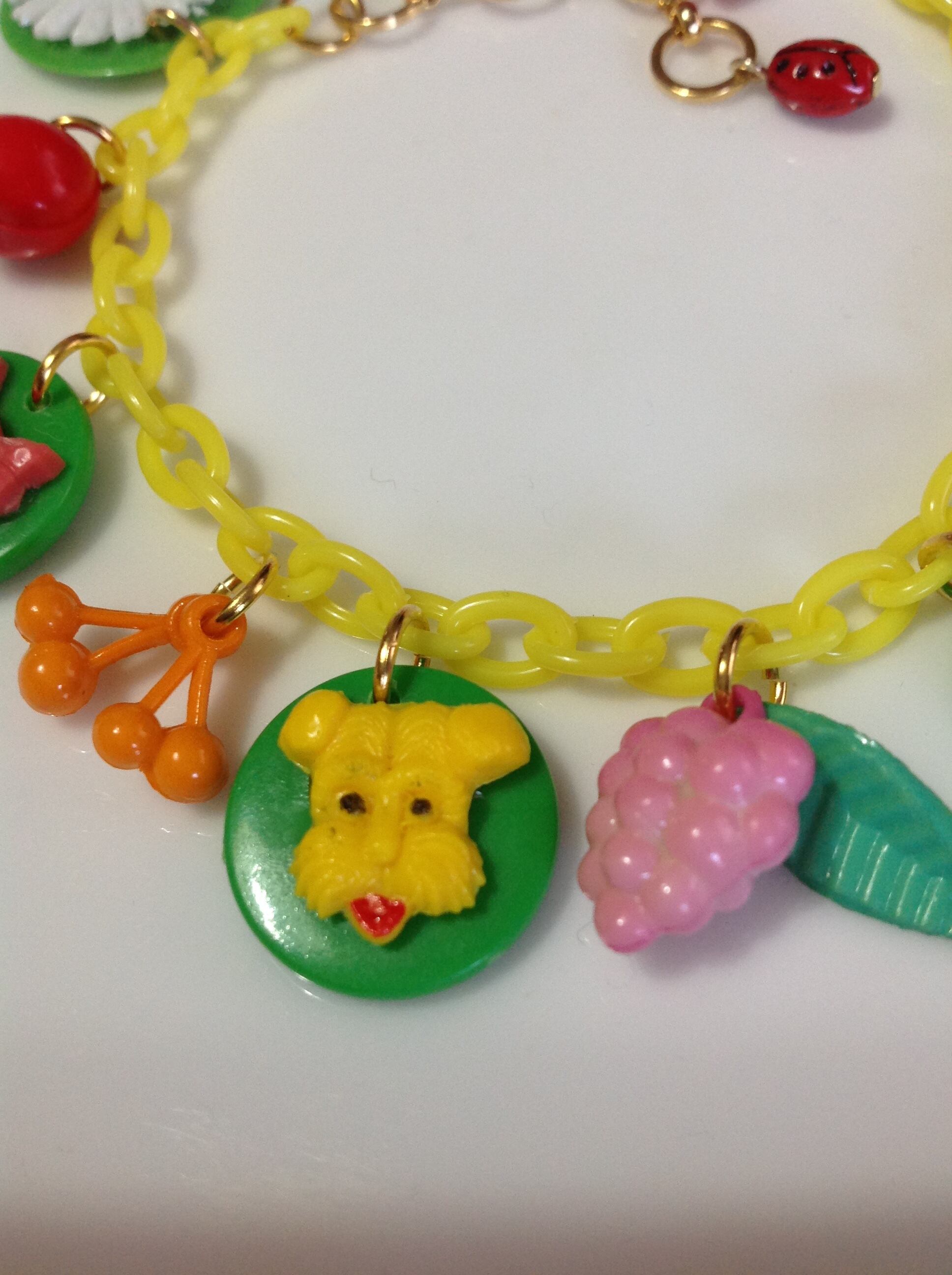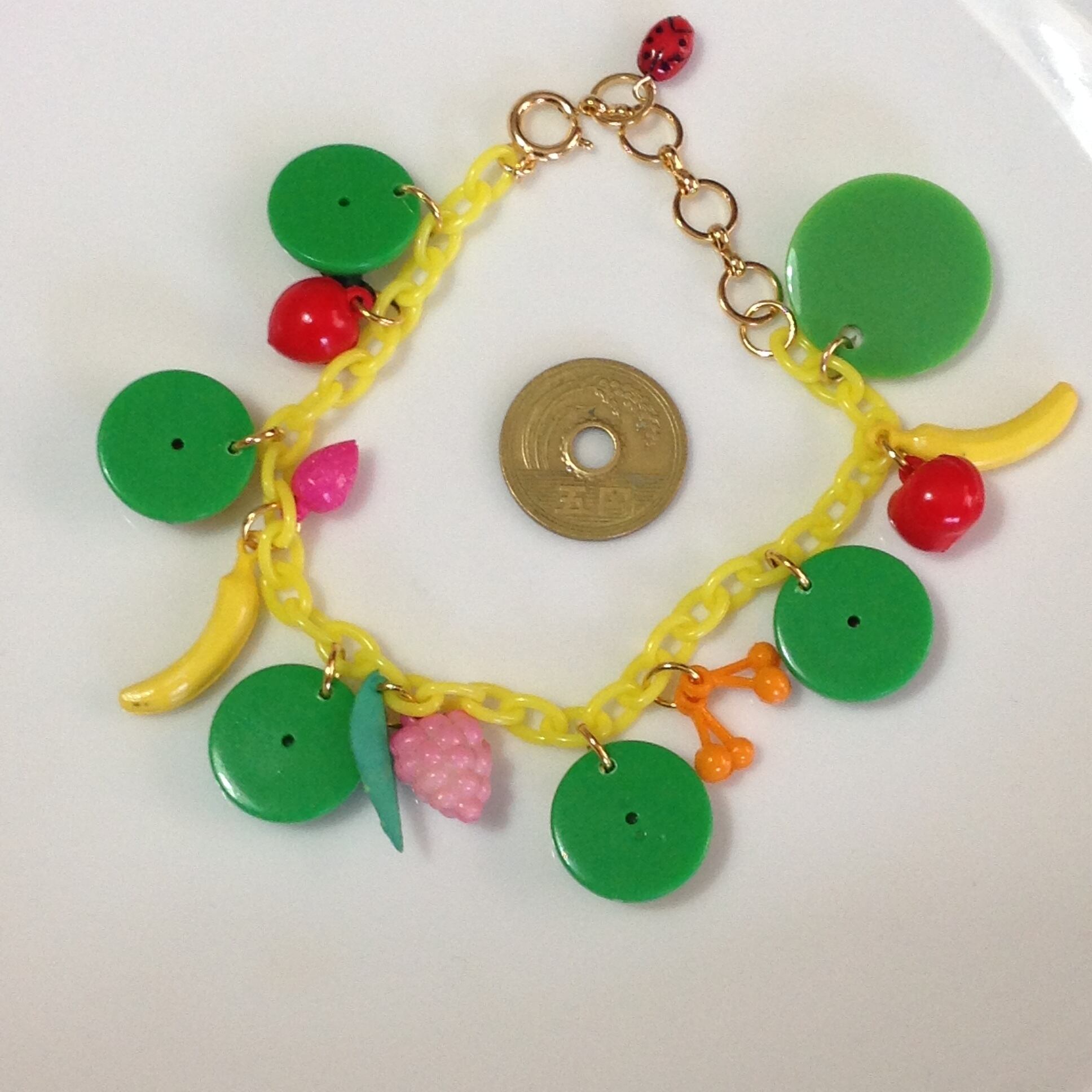 フルーツのチャームがレアです。日本では見たことがないパーツ。(レトロな風合いに一目惚れ❤️)