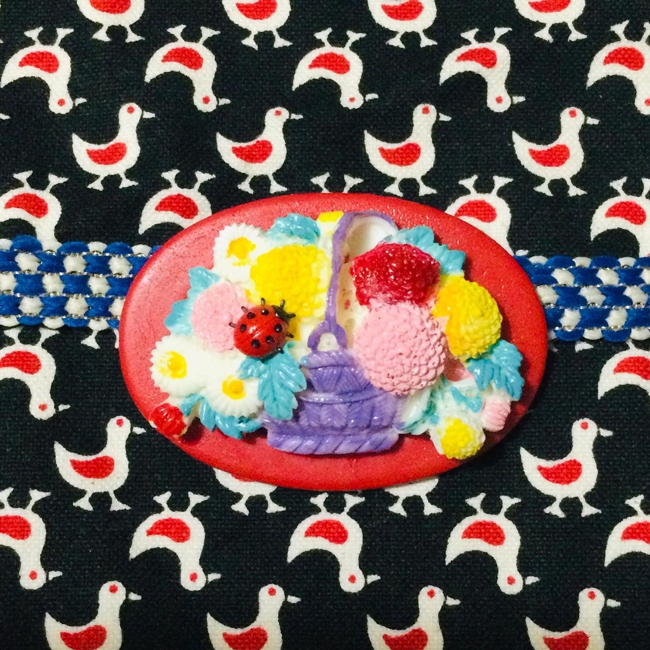 てんとう虫付き 花かご ブローチ(帯飾り)