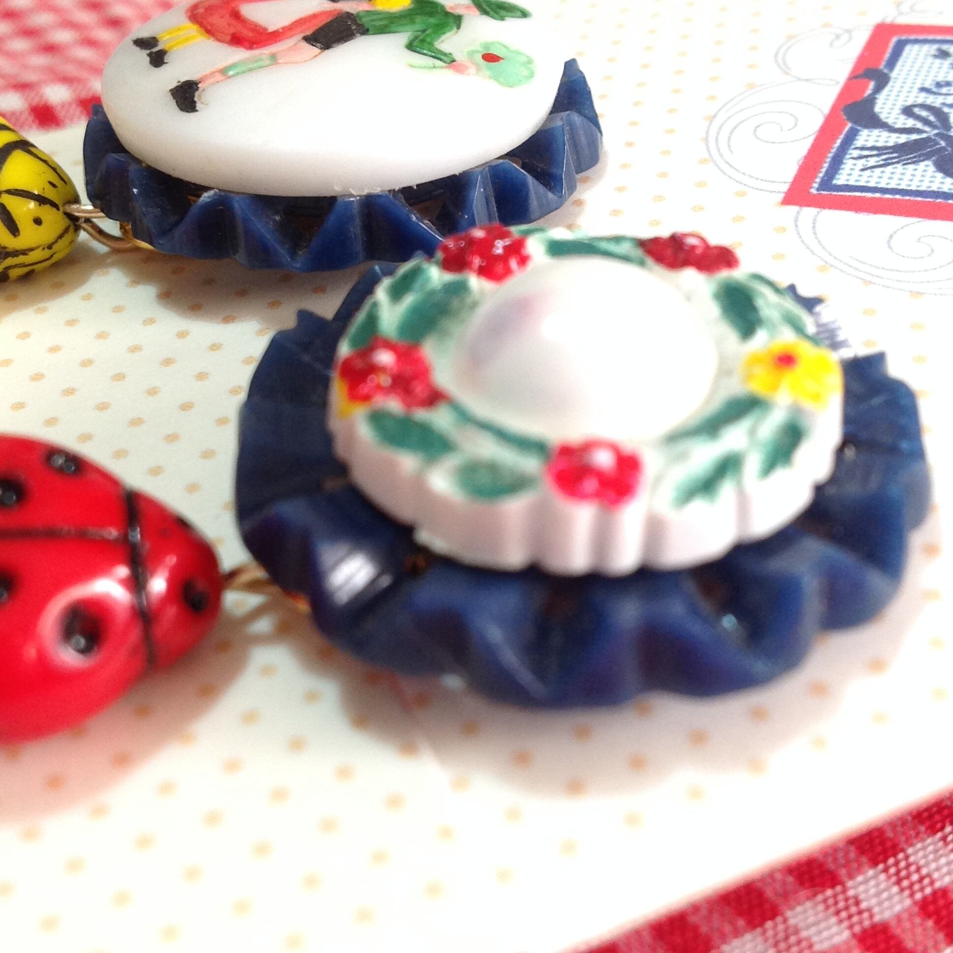 【素材】フランスvintageプラスチックボタン/チェコガラスカボション/チェコガラスてんとう虫ビーズ/メタルイヤリング金具etc