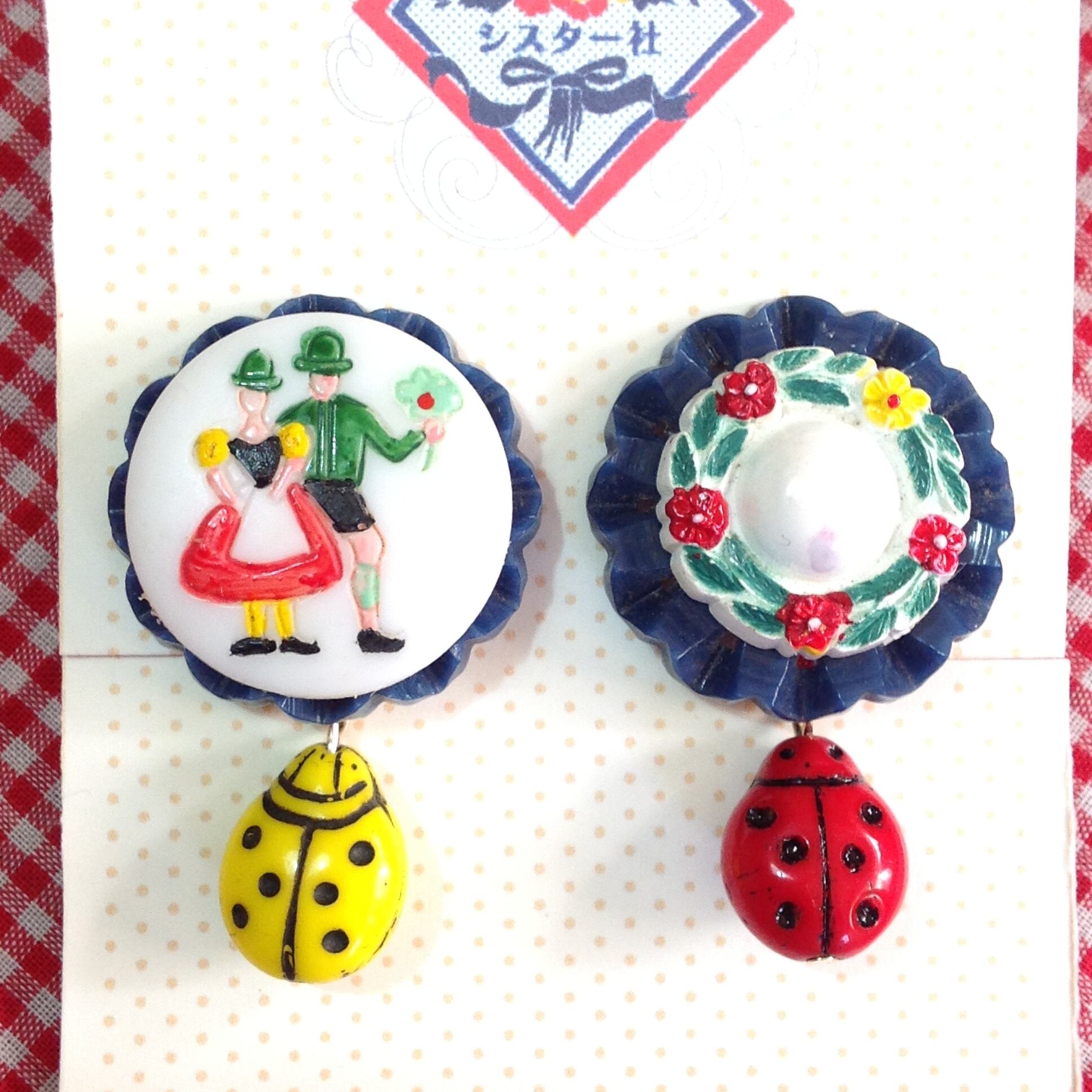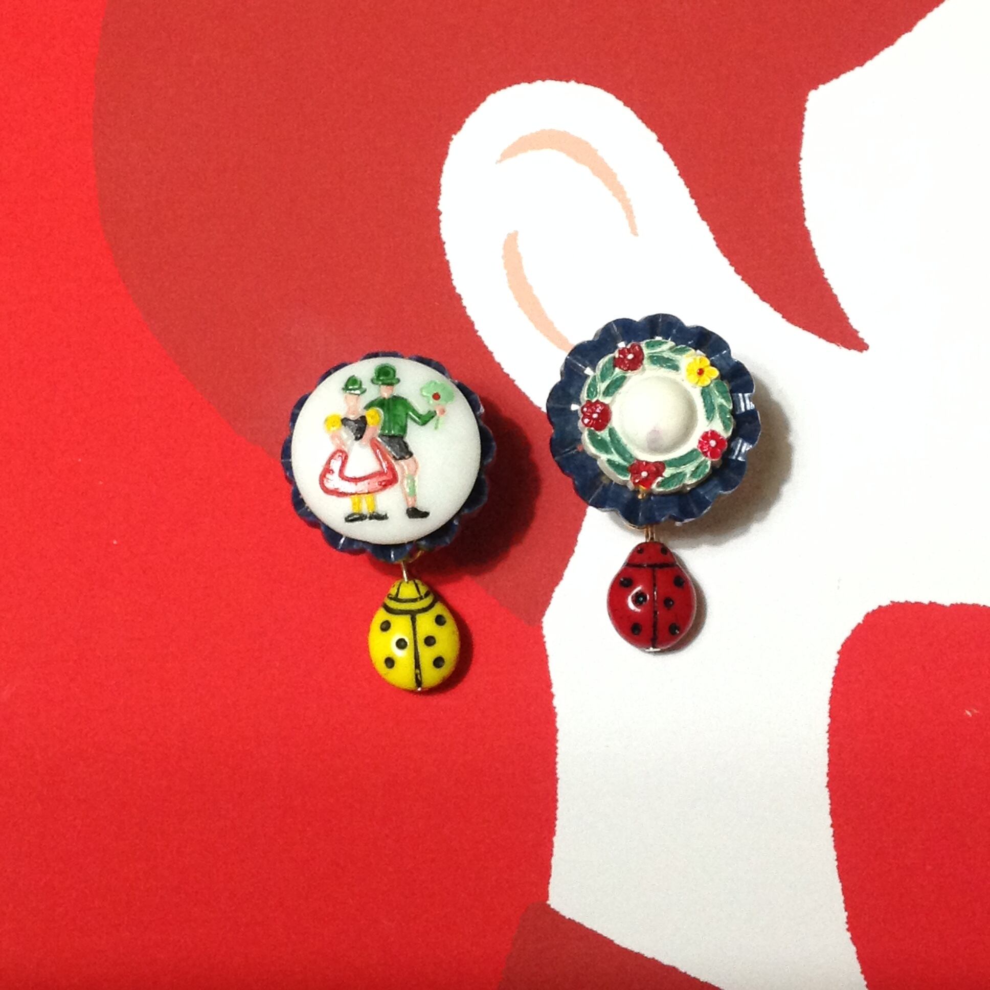 ハンドペイントの味わいが素朴でKitschで可愛らしいイヤリング。