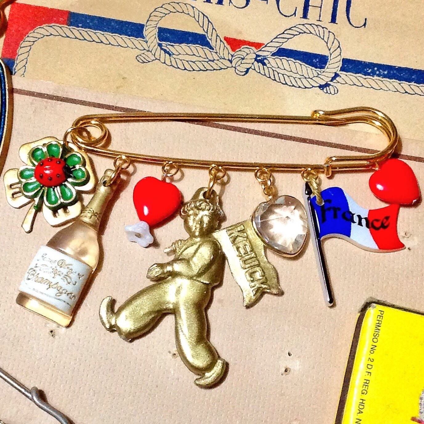こだわっで集めたチャームを贅沢にたくさんつけたピンブローチです。