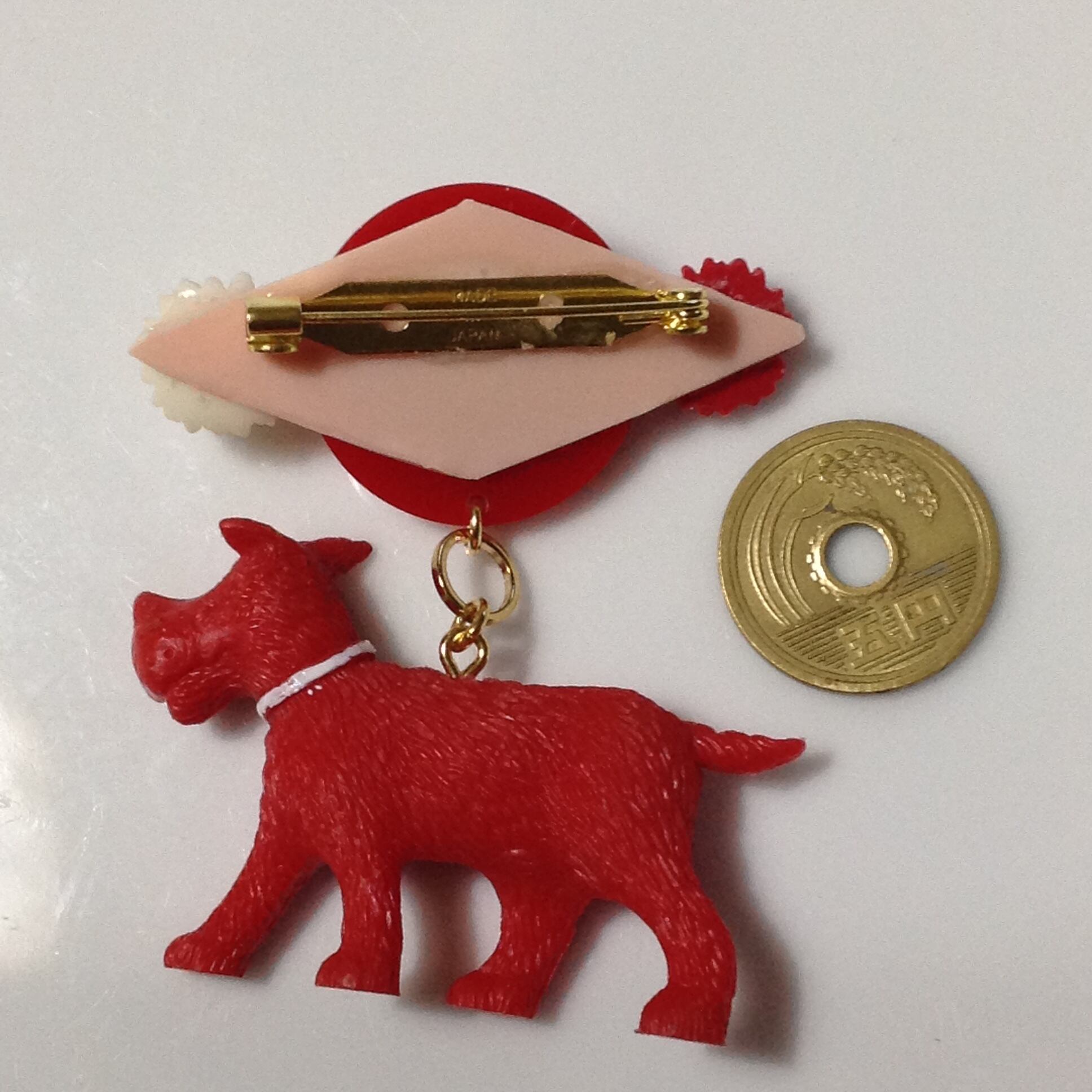 693 RED dog ♡ ブローチ